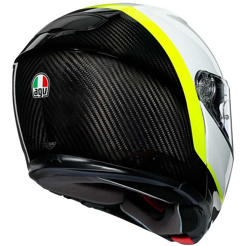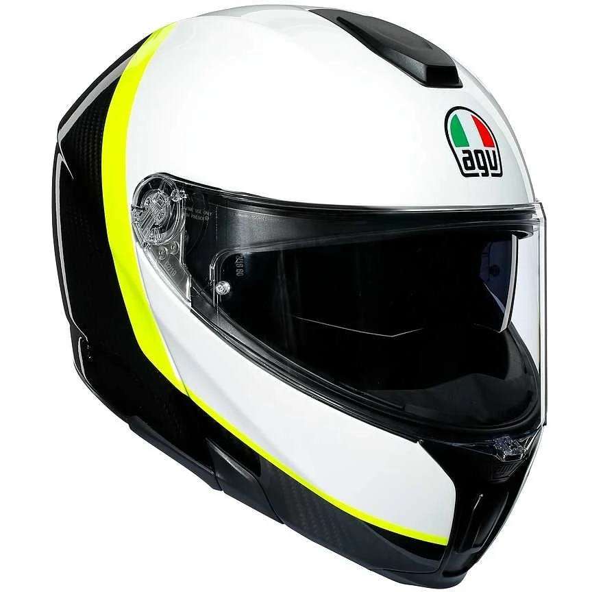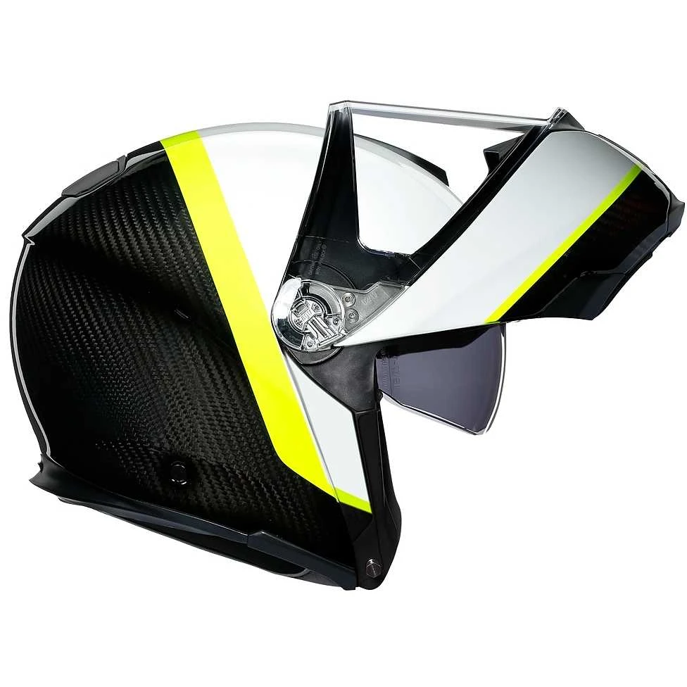 Il primo casco SportModular al mondo: le prestazioni di un casco integrale unito al comfort di un modello modulare. Costruita interamente in fibra di carbonio (calotta e mento), questa specifica struttura raggiunge le stesse prestazioni di protezione della Pista GP R della MotoGP in una struttura incredibilmente leggera, abbinando i massimi livelli di comfort e sicurezza. Progettato per offrire una visione orizzontale a 190 ° come capacità dell’occhio umano, SportModular è stato concepito nella galleria del vento per silenziosità, stabilità aerodinamica e ventilazione superiori.