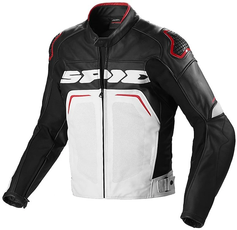 Giubbotto Moto In Pelle Traforato Racing Spidi EVORIDER PERFORATED Nero Bianco Rosso